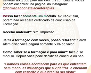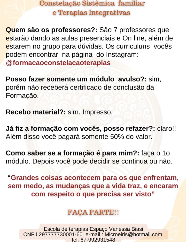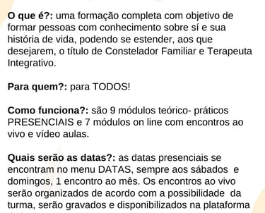 FORMAÇÃO CONSTELAÇÃO SISTÊMICA FAMILIAR E TERAPIAS INTEGRATIVAS